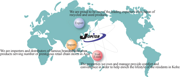 A fines de los años 60, el Sr. Sethi empezó con importar artesanía india y otros productos de consumo a Japón y la compañía alcanzó fama por ser pionera en este campo. En los años 70 con la llegada de la Expo ’70, la compañía fomentó su imagen nacional y fue invitada por todos los importantes grandes almacenes para exhibir y vender productos indios. A partir de entonces Jupiter ha ampliado su red de clientes en Japón y atiende ahora misma a más de 100 clientes en Japón acendiendo así a más de 4000 tiendas individuales.